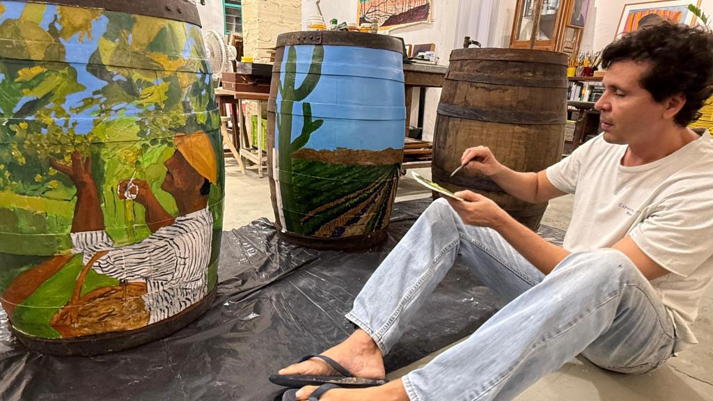 Para o Wine Day Experience, Severi apresenta uma série de barris de carvalho pintados à mão, criados especialmente para o evento. Cada peça retrata as etapas da produção do vinho — da colheita ao amadurecimento — e traduz em cores e movimento a atmosfera singular do sertão. As superfícies pintadas evocam o calor da terra, a luz intensa do semiárido e a presença marcante do povo que cultiva os vinhedos. É uma homenagem ao tempo, ao trabalho e à poesia que nascem do encontro entre arte e território.