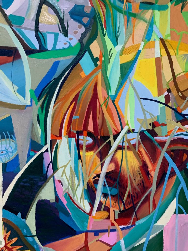 Pinturas que brincam com as texturas e saltam da tela conversam sobre as relações com a terra e o brotar da vida